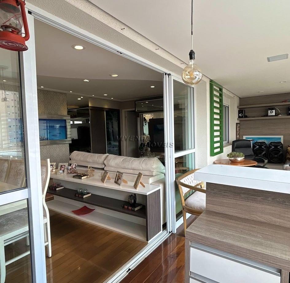 amplo e lindo living integralizado a um moderno e amplo espaço grill, com churrasqueira a carvão, fechamento em cortina de vidro, persianas e com linda vista panorâmica, livre e definitiva.