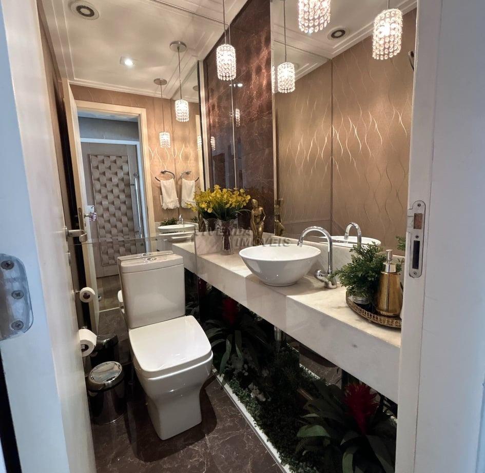banheiros lindos, com pisos e revestimentos diferenciados, pias com granitos nobre, gabinetes de 1ª, box de vidro e amplos espelhos