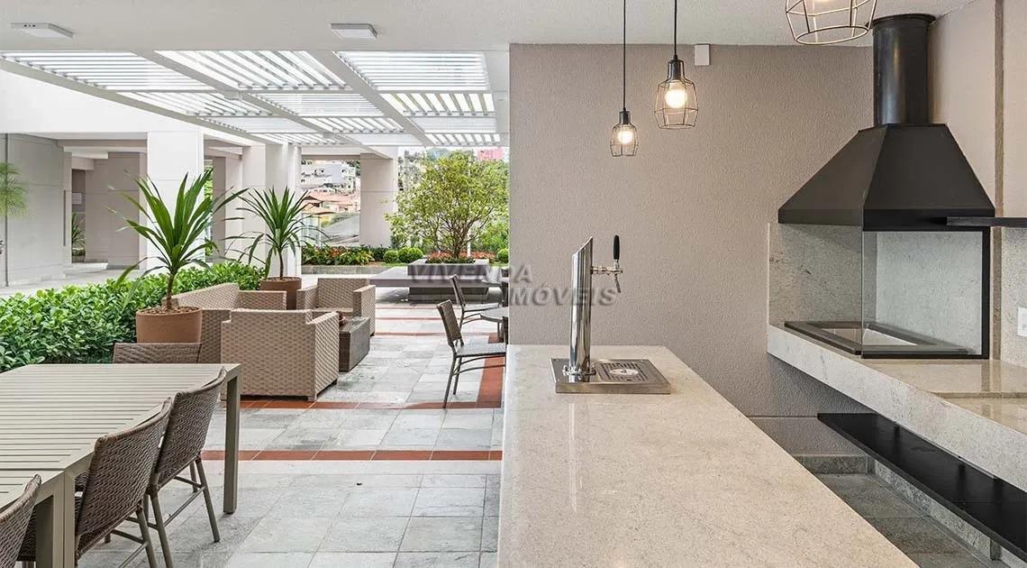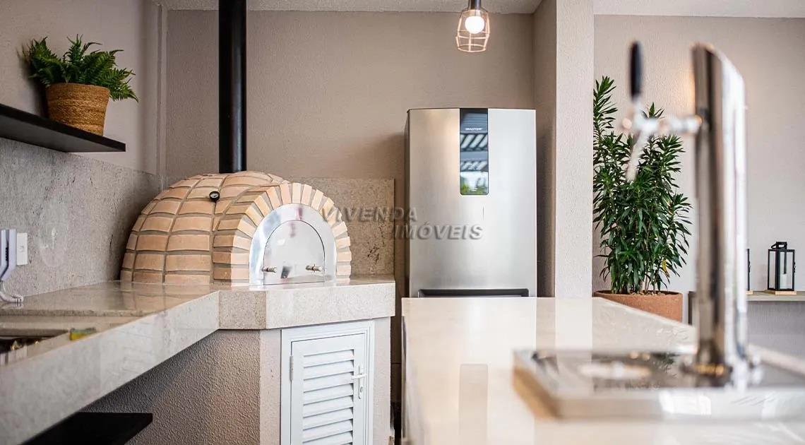 integrado a uma linda sacada com churrasqueira a carvão com