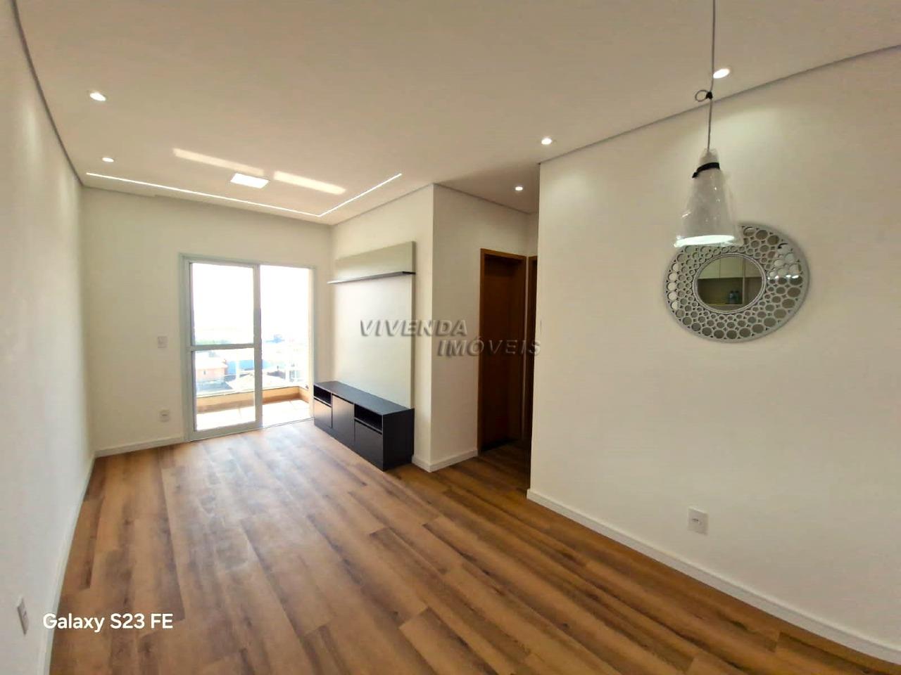 sala 2 ambientes no piso vinílico, teto rebaixado, iluminação de led, lustre, moderno painel e sacada com churrasqueira (a ser instalada)