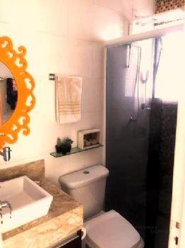 Banheiros com box vidro, pia sobreposta, gabinetes de 1ª linha, espelhos e iluminação em led, detalhes em pastilha de vidro;